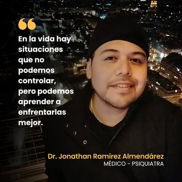¡Hola! Soy el doctor Jonathan Ramírez Almendárez, fanático de la mente humana y las relaciones sociales. Como médico psiquiatra, me dedico a cuidar tu salud de forma global, con enfoque en tu salud mental.